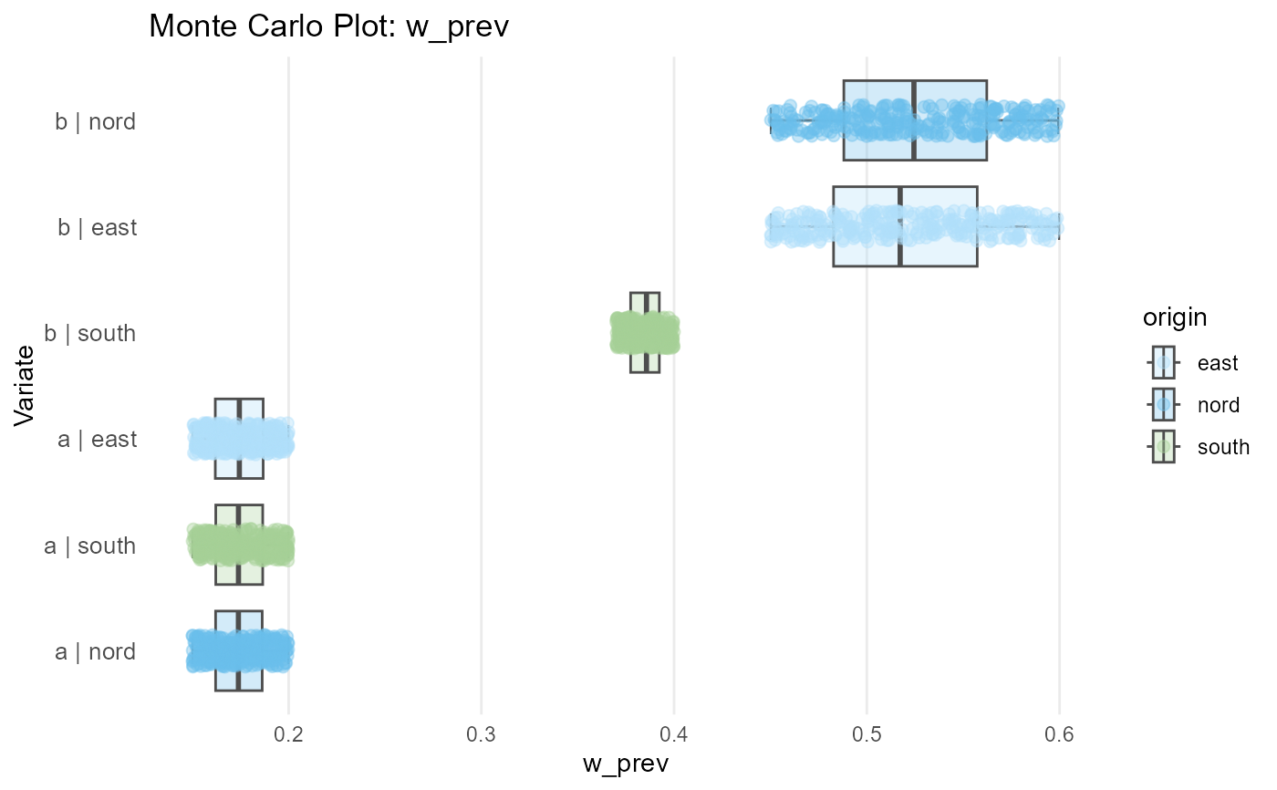 Creates a ggplot2 visualisation of Monte Carlo node data showing distributions